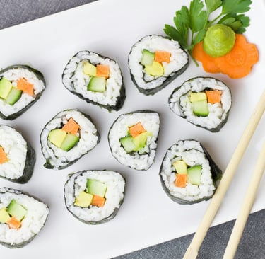 Frische Avocado-, Gurken- und Tofu-Rollen.